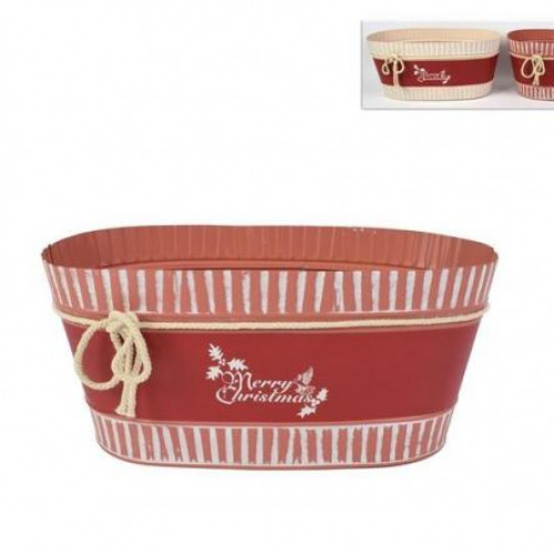 Campana metallo effetto vintage colore bianco, fiocco rosso-oro con corda naturale Cm h. 28x22x22
