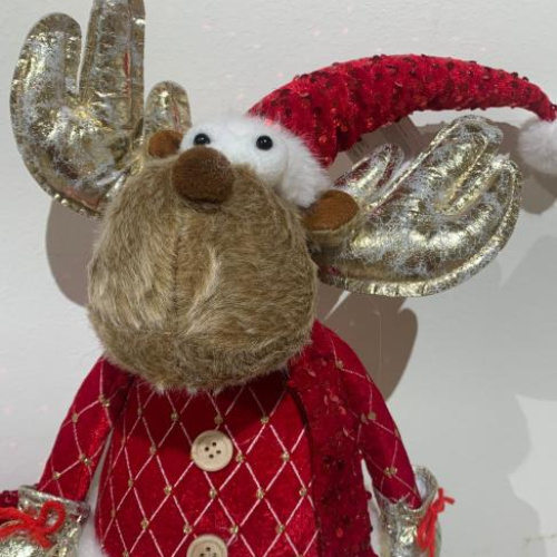 Pupazzo peluches renna abito rosso, gambe estensibili Cm 76/99
