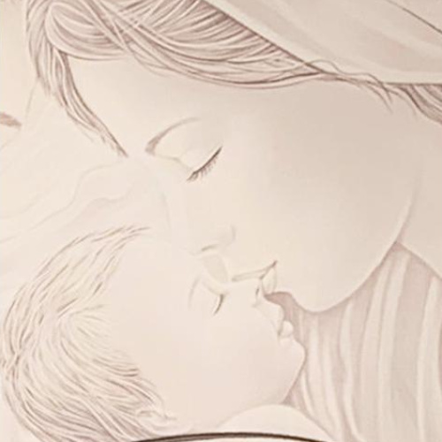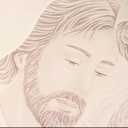 Quadro sacro, in legno materico con forma irregolare immagine in rilievo su sfondo effetto stucco Cm 98x58x2,5