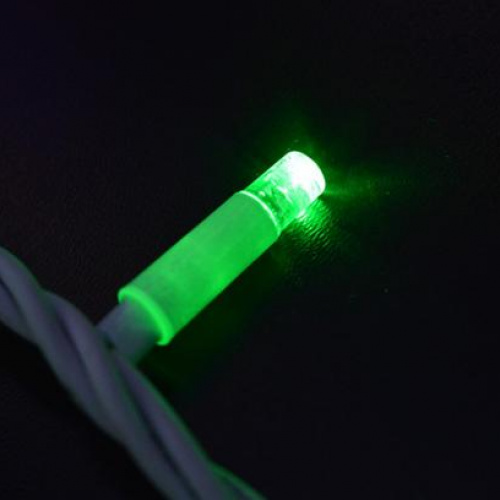 Cordoniera 10mt, verde. Conforme alla normativa europea, prodotto per uso esterno. Luce fissa, 24 volt. IP44, potenza 9,2W. Cavo bianco